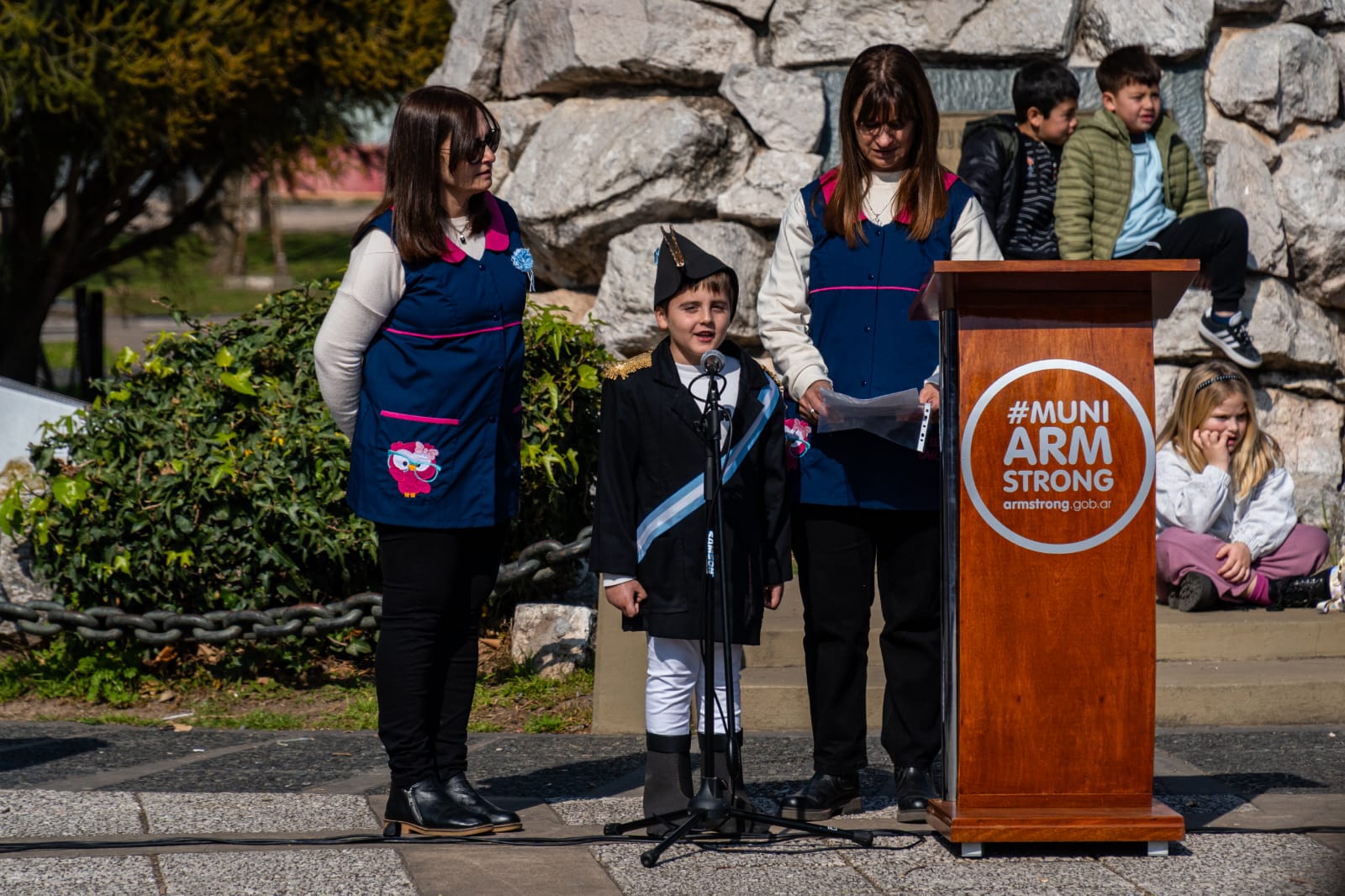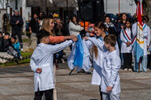 Más tarde, alumnos de la Escuela N° 635 “Juan Bautista Spagnolo” recitaron la poesía “A San Martín” y bailaron la chacarera “Los Granaderos de San Martín”, y alumnos de las salas de 5 años del Jardín de Infantes N° 84 “El Aromo”, con sus voces y gestos, nos invitaron a viajar en el tiempo para rendir homenaje a San Martín.