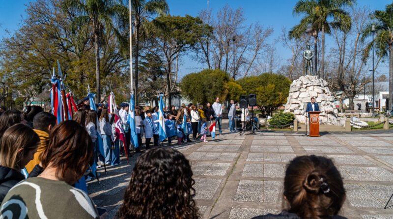 Nuestra comunidad honró la memoria del Padre de la Patria Gral. José de San Martín con un acto oficial realizado en la céntrica plaza que lleva su nombre, con la presencia de toda la ciudadanía representada a través de sus autoridades e instituciones.El Intendente Guillermo Luzzi, en un fragmento de su discurso dijo: “En este presente, vemos cómo palabras como libertad y patriotismo se repiten hasta vaciarlas de sentido, como si fueran slogans publicitarios y no valores que nos atraviesan y comprometen. Pero San Martín nos enseñó que la libertad se defiende con hechos, con sacrificio, con responsabilidad y, sobre todo, con amor a la Patria… Que este 17 de agosto no sea sólo un homenaje, sino un compromiso… Porque, como decía el Libertador: ”Cuando la Patria está en peligro todo está permitido, excepto no defenderla””.