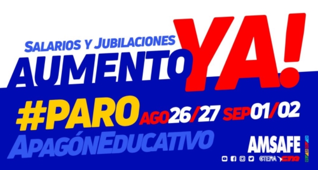 Amsafe resolvió la continuidad del plan de lucha provincial con dos paros de 48 horas. El primero tendrá lugar mañana y pasado, 26 y 27 de agosto, en tanto que la semana próxima, serán los días 1 y 2 de septiembre.