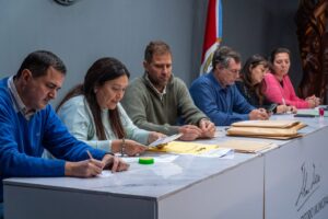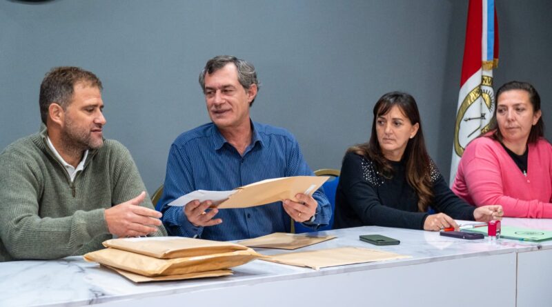 Participaron del acto el Intendente Guillermo Luzzi, el Senador Provincial Pablo Verdecchia, los secretarios de Gobierno Daniela Pérez, de Hacienda y Finanzas CPN Franco Sterrantino, y de Obras Públicas Ing. Natalia Martínez, la Dra. Natalia Córdoba en representación del Departamento de Legales, y los Sres. Luis Montaño, Víctor Enriquez, y Marcelo Araya en calidad de oferentes.
