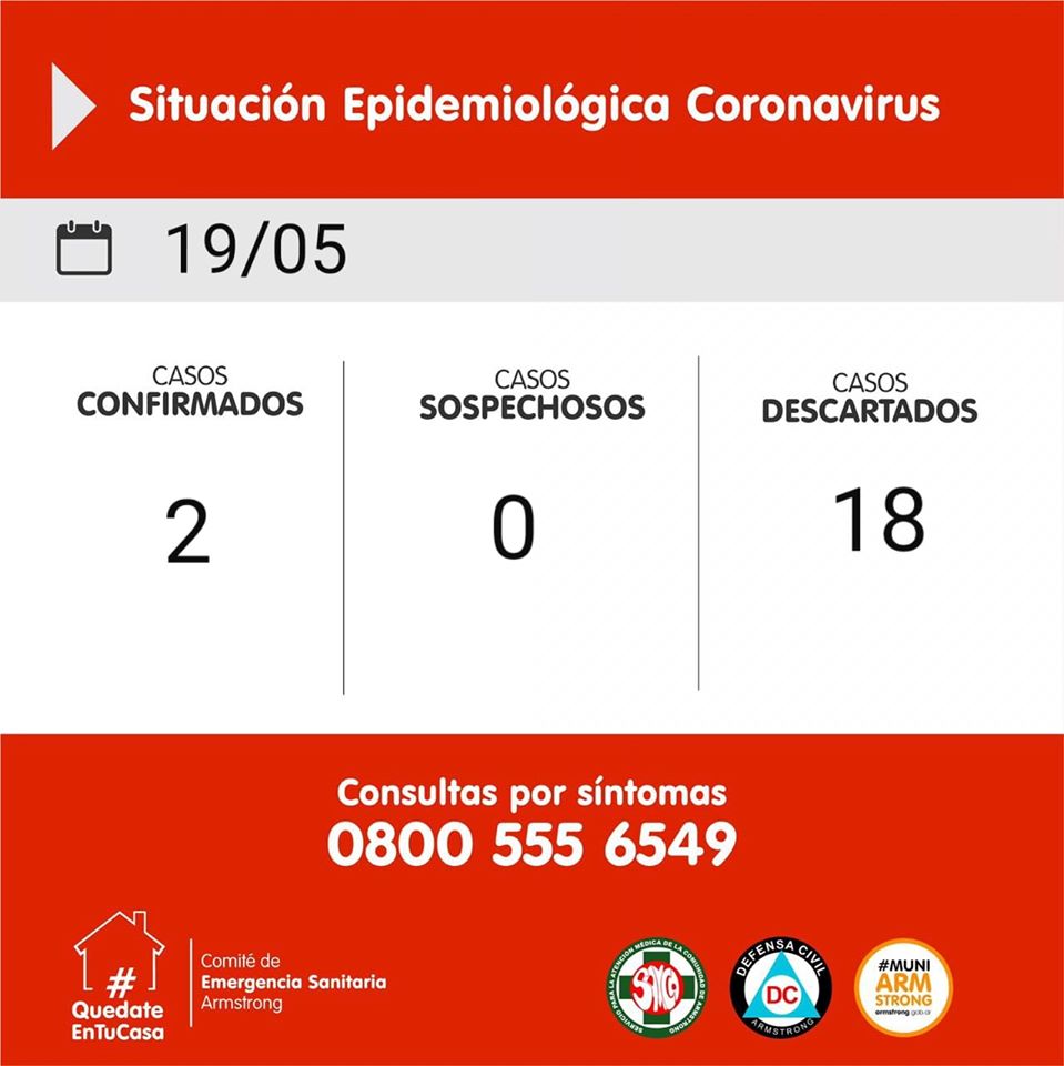 Desde el Comité de Emergencia local, se informo sobre 2 nuevos casos en la mañana de hoy 19 de mayo, uno de ellos sería de la ciudad de Las Parejas y el otro a la ciudad de Armstrong.