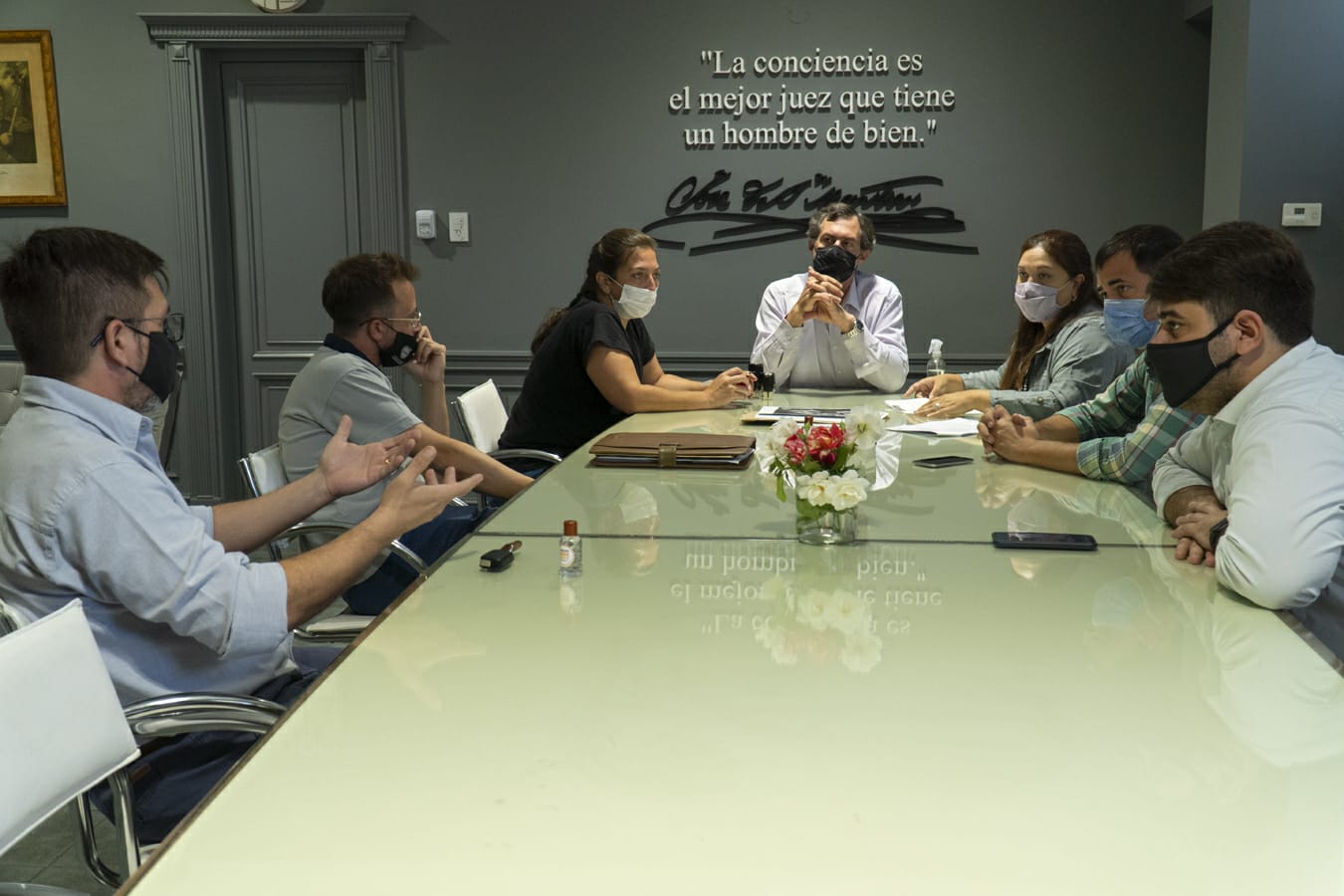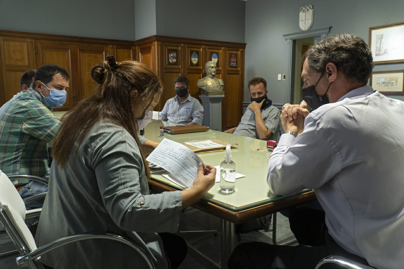 El acto fue encabezado por el Intendente Pablo Verdecchia y participaron los Secretarios de Gobierno Daniela Pérez, de Hacienda y Finanzas CP Franco Sterrantino, la Dra. Natalia Córdoba en representación del Departamento Legales, y los Sres. Maximiliano Scalbi y Pablo Romero en calidad de oferentes.