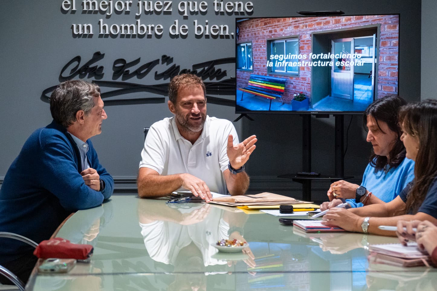 El viernes 10 de abril en dependencias de la Municipalidad de Armstrong se realizó la apertura de sobres correspondiente al llamado a licitación Pública N° 04/2026 para la provisión de mano de obra, equipos y materiales para obra: construcción de aula Jardín N° 33, Programa 1000 aulas, con un presupuesto oficial de $ 52.000.000. Participaron del acto el Sr. Intendente Ing. Guillermo Luzzi, los Secretarios de Obras Públicas Ing. Natalia Martínez, y de Educación y Desarrollo Integral Prof. Rosna Siri, la Dra. Valeria Acchilli en representación del Juzgado de Faltas, el Senador Provincial Pablo Verdecchia, la Arq. Camila Lainatti en representación de la oficina técnica de la Sec. De Obras Públicas, la Directora de Nivel Inicial de la Escuela N° 33 María Laura Comisso, la Rectora de dicha institución Natalia García, la Delegada de la Región V de Educación Marisa Príncipe, el Presidente de la Asoc. Cooperadora Sebastián Feresin, y el Sr. Roberto Cartabia en calidad de oferente.
