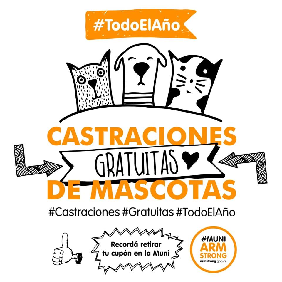 Convivir con una mascota implica responsabilidades hacia ella, con el medio y con el resto de la sociedad. El municipio realiza castraciones gratuitas todo el año, a través de los distintos profesionales de la ciudad. Llegate hasta el municipio y retira tu autorización, de Lunes a Viernes, de 7 a 13 hs. Trabajemos juntos por una tenencia responsable.