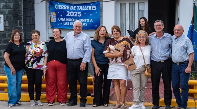 el Intendente Guillermo Luzzi, el Presidente del Centro de Jubilados Juan Carlos Pievaroli, y el Presidente del Concejo Municipal Alejandro Pertusati. Acompañaron la Secretaria de Gobierno Daniela Pérez, la Directora de Promoción Comunitaria Graciela Pereyra, e integrantes de la Comisión Directiva y colaboradores del Centro. Los talleres que llegaron a su fin en este ciclo 2025 fueron: Arte y Gimnasia a cargo de