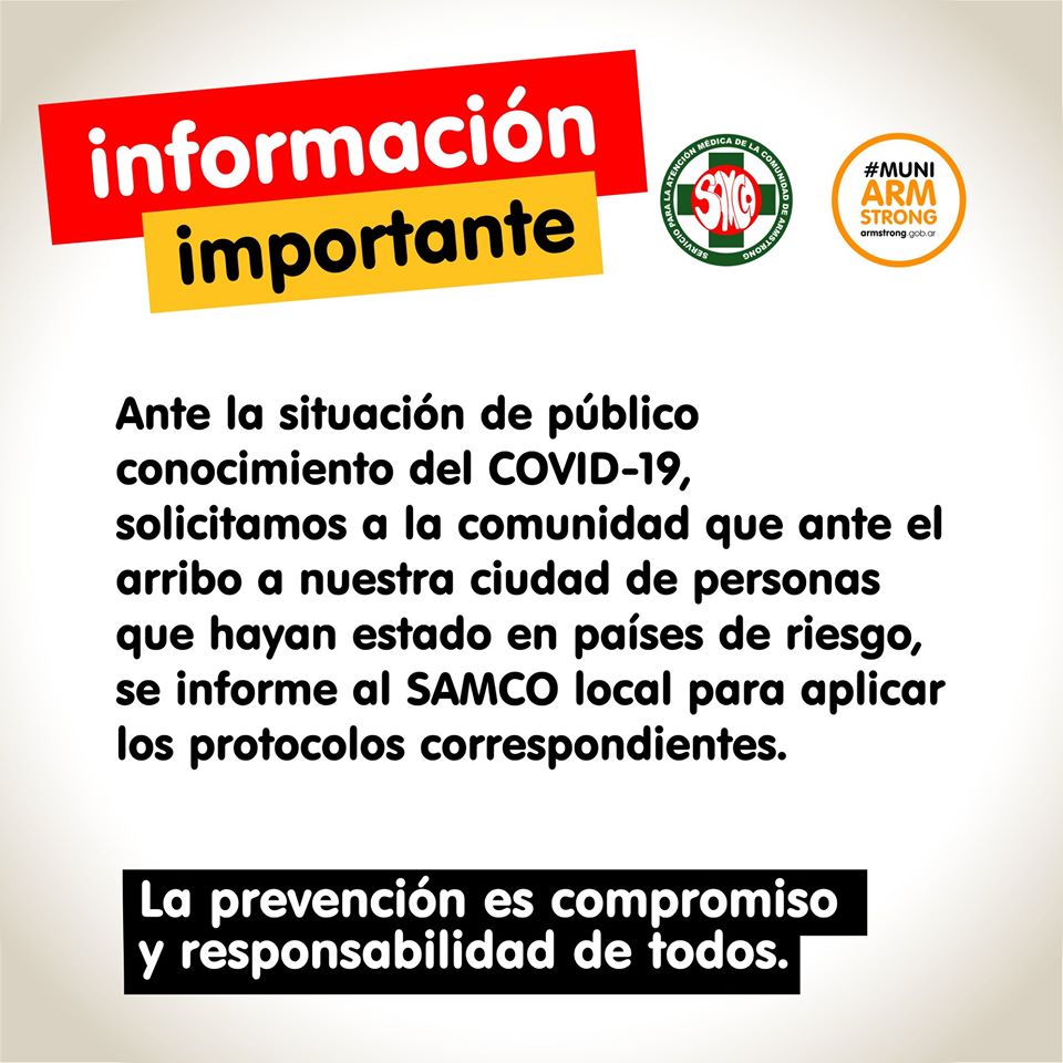 Esta medida es de aplicación inmediata y se solicita a los vecinos apelar a la solidaridad para resguardar la salud de toda la comunidad y estar atentos a los organismos gubernamentales.