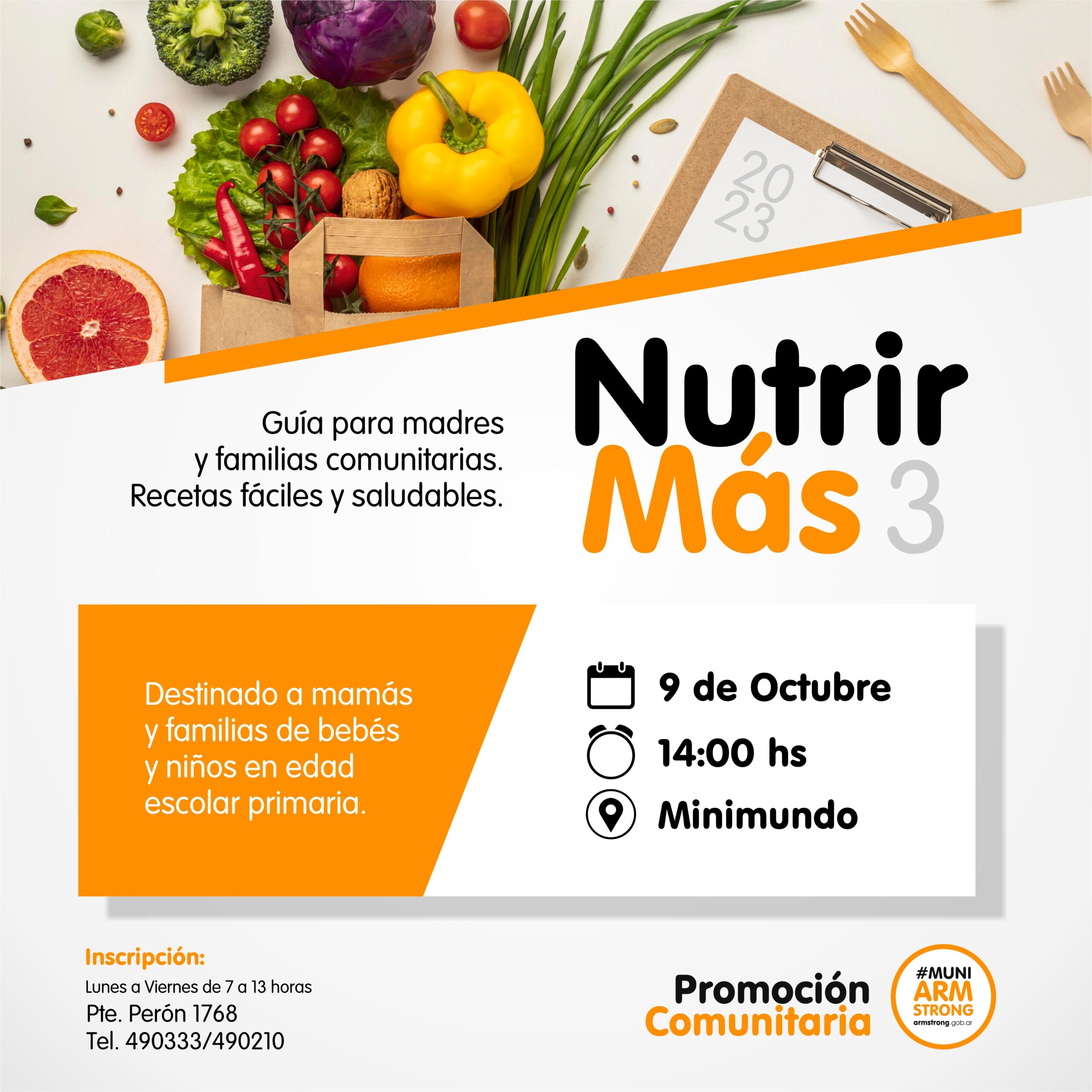 Con el objetivo de contribuir a mejorar la salud en la infancia, reducir la incidencia y gravedad de las enfermedades y problemas de salud que afectan a los niños y mejorar el crecimiento y desarrollo durante los primeros años de vida continúa el Programa Nutrir Más.El tercer encuentro será el lunes 9 de octubre a las 14 hs. en el Espacio Minimundo y la invitación está dirigida a todas las familias que ya han participado de reuniones anteriores y para aquellas que deseen hacerlo por primera vez.