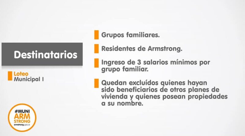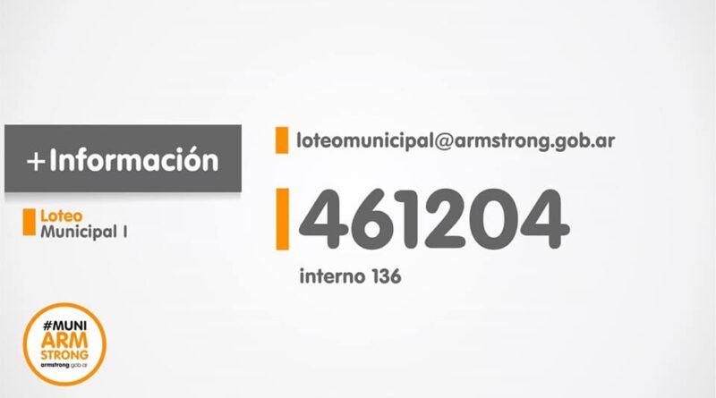 El intendente de la ciudad de Armstrong brindo una conferencia anunciando el primer loteo Municipal. «Desde hace muchos años, se manifiesta la falta de oportunidades para muchas familias de acceder a un terreno digno, sobre el cual concretar el objetivo de la casa propia. Que a medida que pasan los años, y las crisis se renuevan y se consolidan, con ellas también se consolidan las frustraciones de metas personales propuestas.»