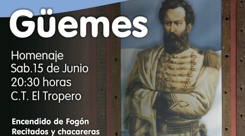 Municipalidad de Armstrong junto a “El Tropero” invitan a participar de un fogón y posterior peña con motivo de conmemorar un nuevo aniversario del fallecimiento del Gral. Martín Miguel de Güemes.