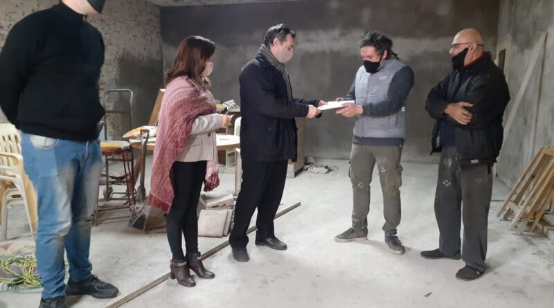 El Intendente Municipal Pablo Verdecchia recorrió con las autoridades del Club Huracán las obras de refacción que están llevando adelante en la Sede Social, y realizó la entrega de un aporte económico.