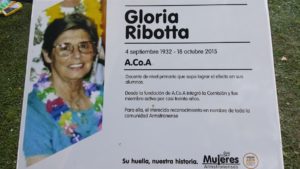• Gloria Rosalía Ribotta docente de nivel primario que supo lograr el afecto en sus alumnos. Desde la fundación de A.CoA integró la Comisión y fue miembro activo por casi treinta años.