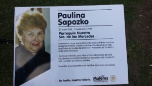 • Paulina Sapozko, autodidacta, mujer que profesó la fe , basó su trabajo social en el dogma cristiano. Creadora y Primer Presidenta de la Liga de Madres de Familia del Barrio Sur. Presidenta de Cáritas y de la Junta Parroquial. Formó un comedor para niños en las instalaciones del Club Estudiante que posteriormente fue trasladado a la Escuela N° 600. Comedor que lleva su nombre. Postulada por Parroquia Nuestra Sra de la Merced.