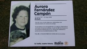 • Aurora Fernández Campón fue ama de casa, de labor silenciosa, dedicándose casi exclusivamente a la crianza de sus hijos.- Su rol social se inicia acompañando a su esposo, integrándose a la Rueda Femenina de Rotary. A partir de allí, forma parte de la Comisión Fundadora de A.Co.A, asociación destinada al servicio de la comunidad fundada en 1986.-