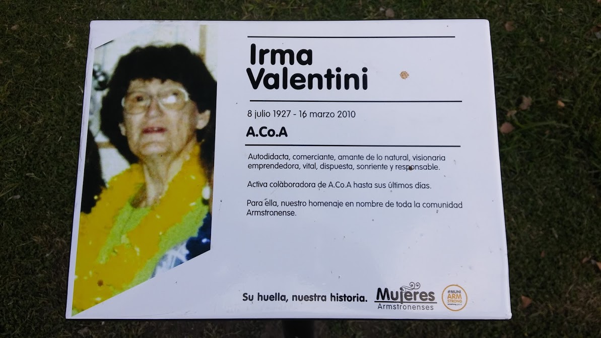 • Irma Valentini, autodidacta, comerciante, amante de lo natural, visionaria, emprendedora, vital, dispuesta, sonriente y responsable. Activa colaboradora de A.Co.A hasta sus últimos días.