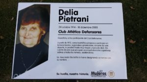• Delia Pietrani, deportista, activa participante del Club Defensores. A partir de 1972, como bochofila comienza a participar en torneos locales, regionales y provinciales. Amante de este deporte, lo practó hasta muy mayor y nunca lo dejó. Da cuento de esto que era quien acompañaba a las jugadoras activas a todos los torneos, asistiéndolas. A sus 90 años la Asociación Bochófila la honra designando un torneo con su nombre. Por el Club Defensores.