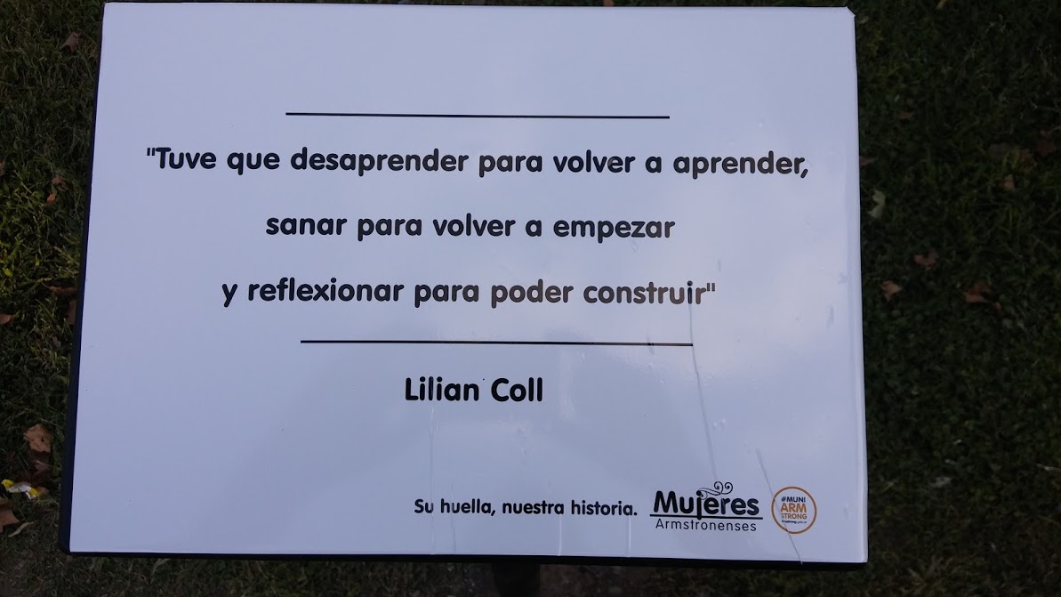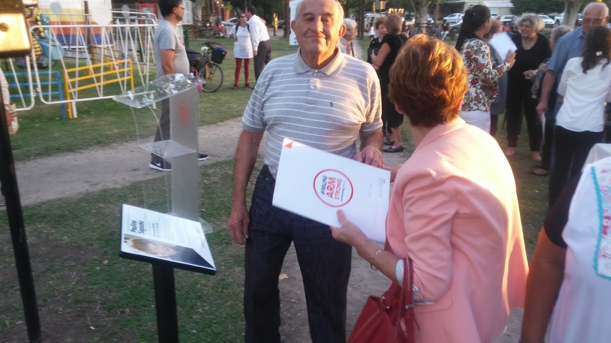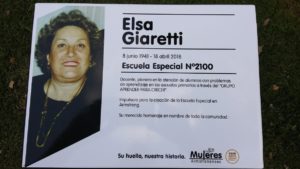 Luego se le hizo entrega de un presente a la Profesora de Historia, la sra. Lilian Coll por su colaboración en este trabajo realizado,además en el Paseo de las mujeres se encuentra una frase que le pertenece.