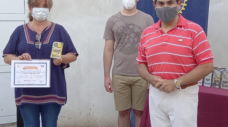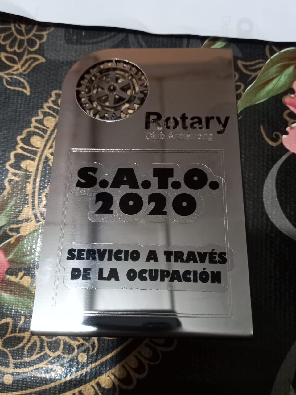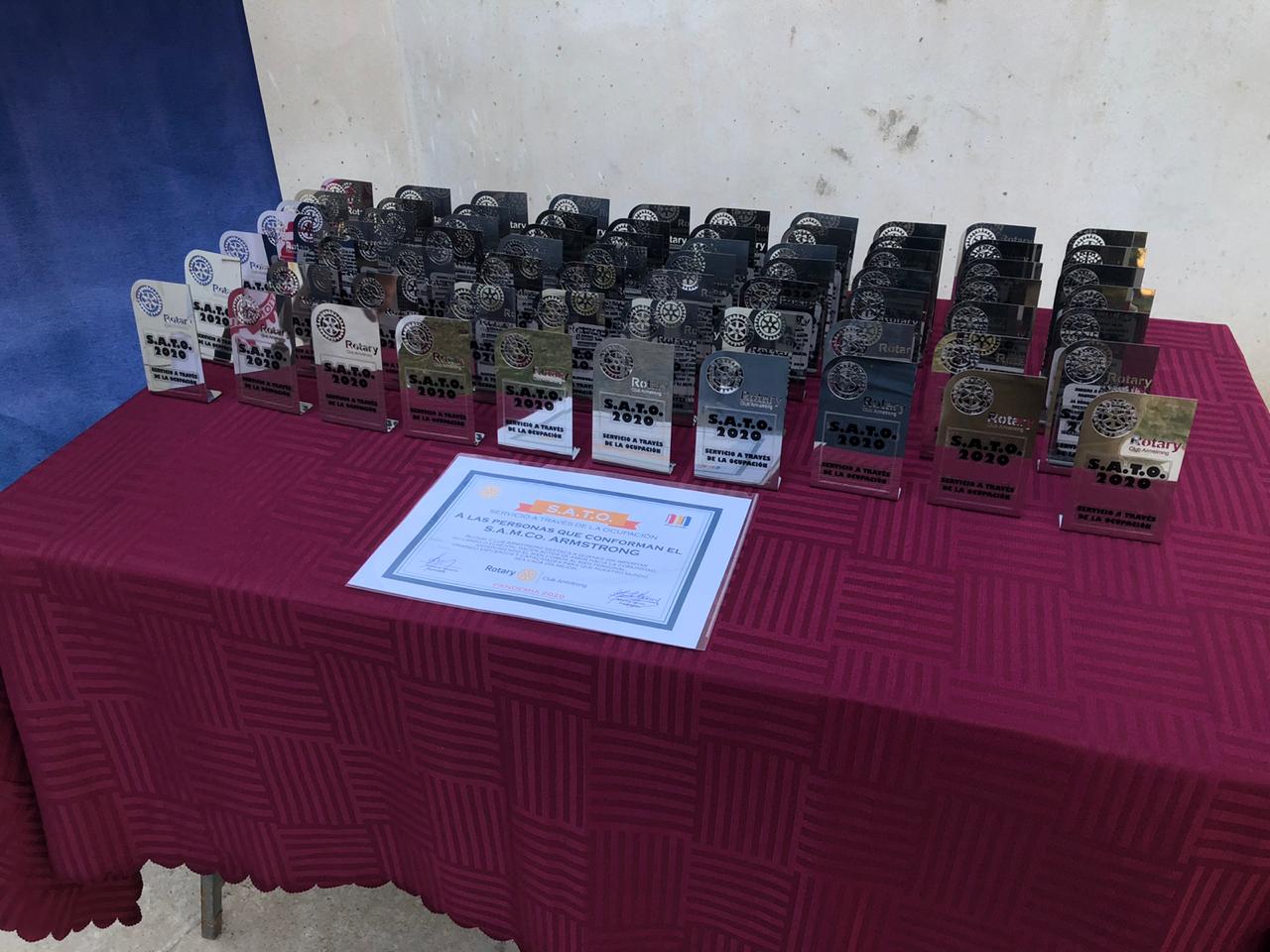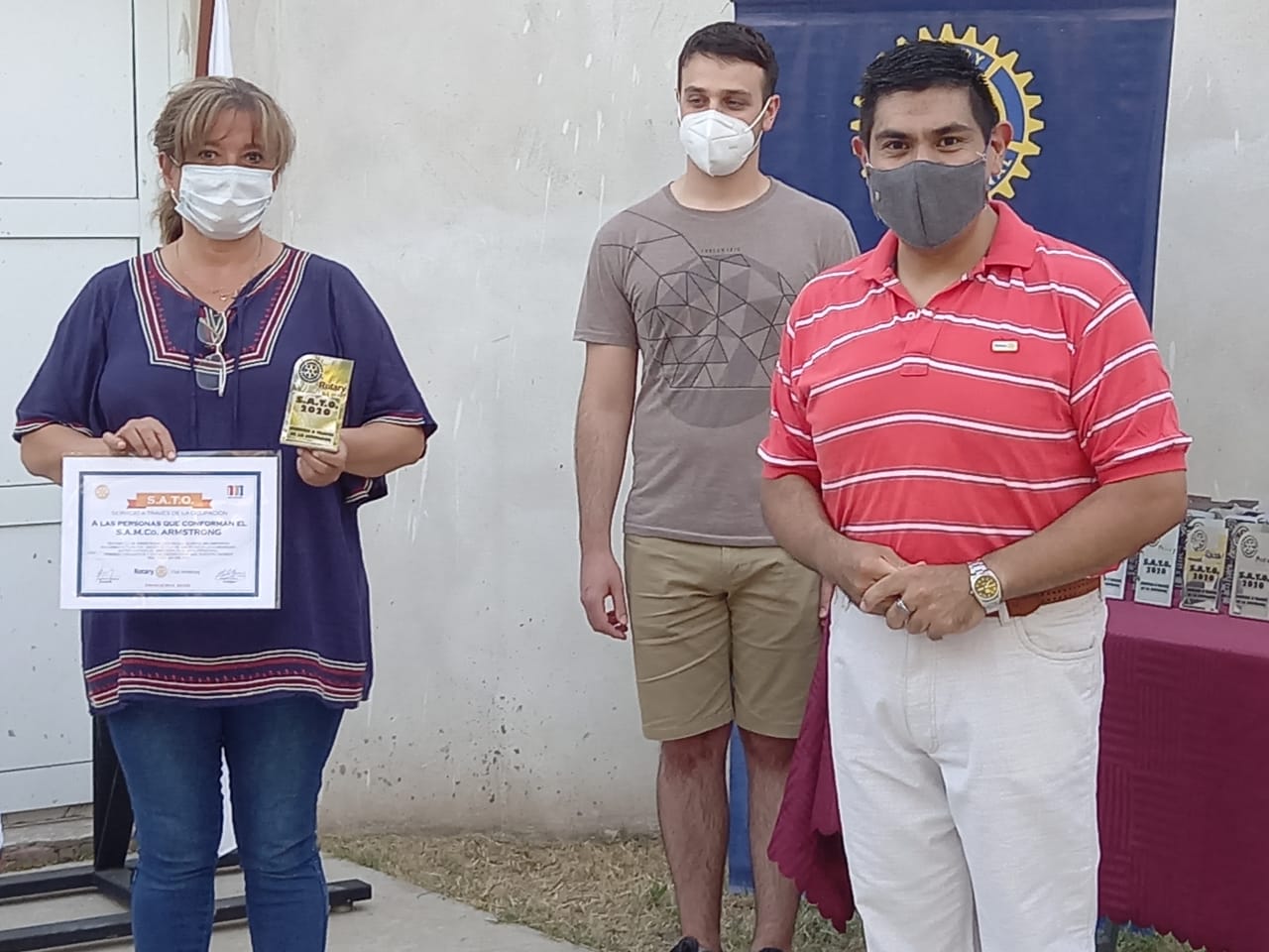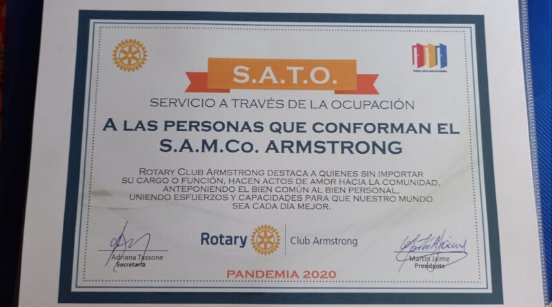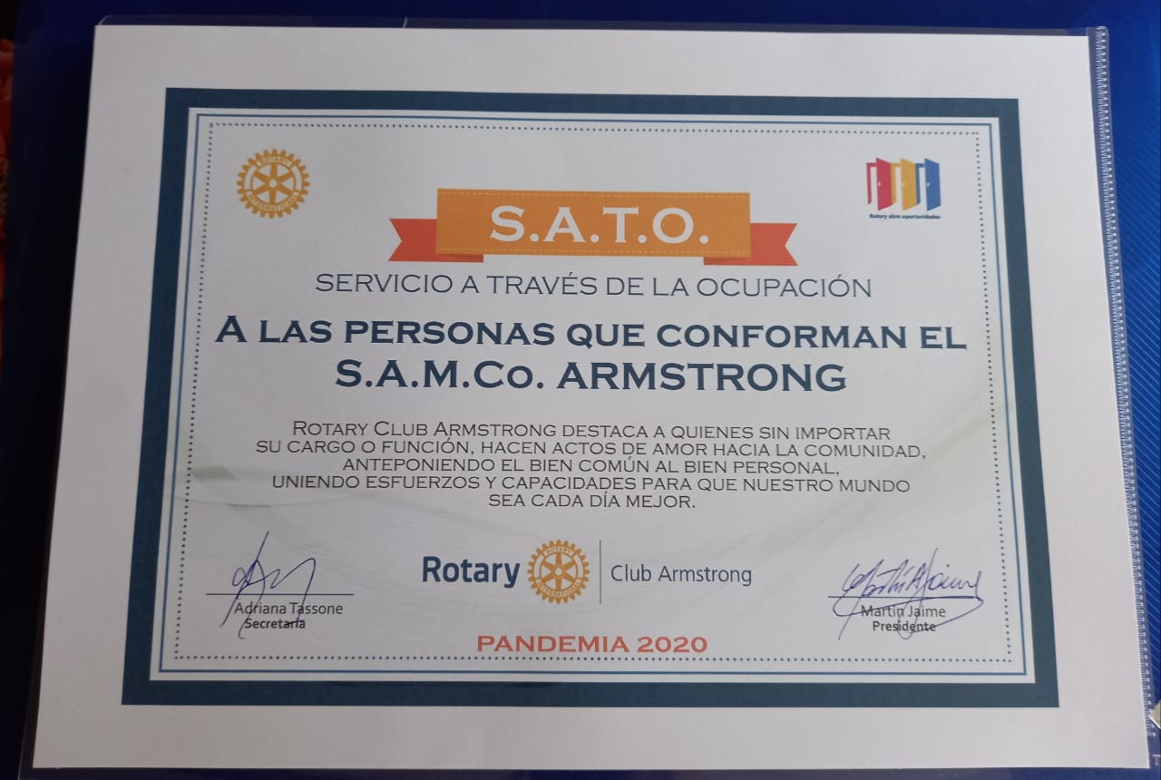 El día 04/01/21 a las 19:30hs frente a nuestra Casa Rotaria, Rotary Club Armstrong hizo entrega del reconocimiento S.A.T.O. (Servicio A Través de la Ocupación) a todas las personas que integran el S.A.M.Co. de nuestra ciudad .