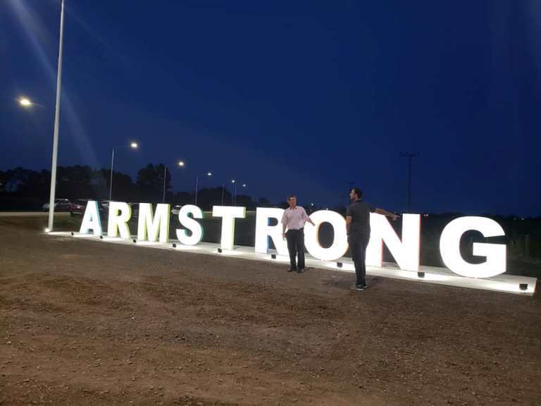 “Los vecinos de nuestra ciudad hacía mucho tiempo venían solicitando las luminarias de este lugar, por suerte ya concretamos esta tercera etapa de luminarias y juntamos con un cartel que es identificatorio de la ciudad que la verdad quedo muy lindo. Y estas letras son el trabajo de una herrería local, las pinto otra empresa de Armstrong, las armo personal de maestranza, todo tiene que ver con embellecimiento, con una mejora de vida, con la seguridad vial y con trabajo para nuestros armstronenses”. Finalizo el intendente.