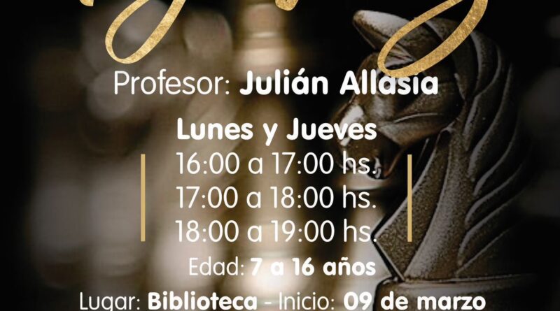 Las clases se dictan en el sum de la Biblioteca Popular Sarmiento desde el 9 de marzo, dirigido a niños y jóvenes desde los 7 hasta los 16 años de edad. Aprender ajedrez puede ayudar a desarrollar habilidades cognitivas, como la memoria, la concentración y la planificación. También puede ayudar a mejorar el rendimiento académico, especialmente en matemáticas. En cuanto al desarrollo cognitivo: Desarrollar la memoria a corto y largo plazo; Mejorar la capacidad de atención y concentración; Desarrollar habilidades de pensamiento complejo, como la resolución de problemas, la toma de decisiones, y el pensamiento crítico; Desarrollar la capacidad de abstracción; Desarrollar tácticas y estrategias. Si hablamos de valores: Fomentar la tolerancia, al permitir que otras personas puedan pensar de forma diferente; Fomentar la paciencia; Fomentar un ambiente de respeto mutuo y aprendizaje compartido; Enseñar a no discriminar. Y si lo vemos desde el aprendizaje: Mejorar el aprendizaje y la comprensión; Mejorar la