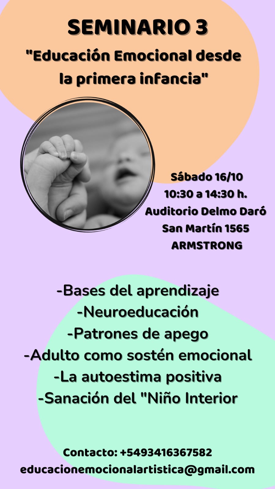 La Municipalidad de Armstrong invita a participar del tercer encuentro de los seminarios destinados a padres, educadores, terapeutas y cualquier persona que tenga contacto con niños sobre educación emocional artística, a cargo de la psicoterapeuta María Belén Cerfoglio.