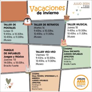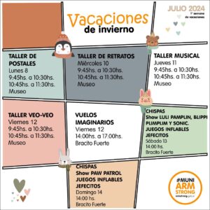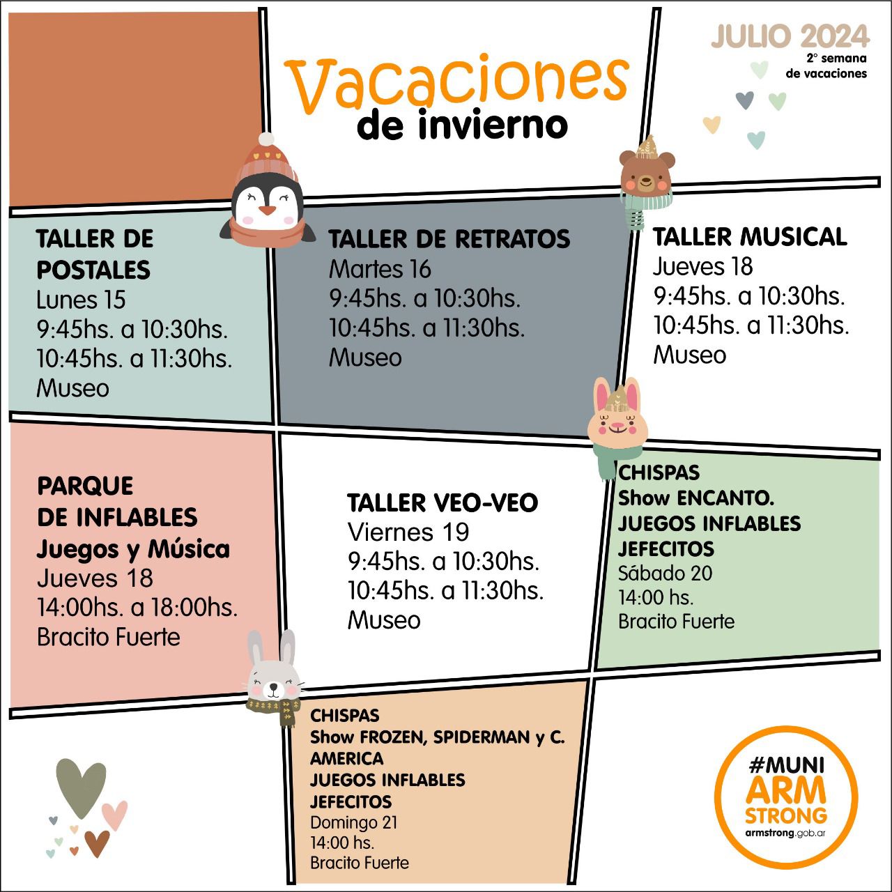La Municipalidad de Armstrong invita a toda la familia, especialmente a los más pequeños, a participar de las fantásticas propuestas previstas para las próximas vacaciones de invierno 2024 con el siguiente cronograma: