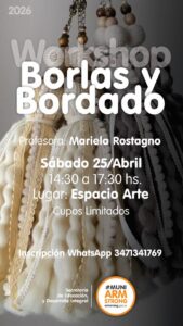Municipalidad de Armstrong invita a participar del workshop de borlas y bordado que se realizará en la Estación Arte (ex ferrocarril), el sábado 25 de abril, de 14:30 a 17:30 hs., con cupos limitados. La propuesta es hacer un seminario intensivo aprendiendo a armar borlas para decorar el hogar y/o prendas, anexando accesorios con bordado mexicano, mezclando texturas, colores y materiales. Dirigido a quienes tengan o no conocimientos previos. La inversión es de $ 7.000, costo que incluye