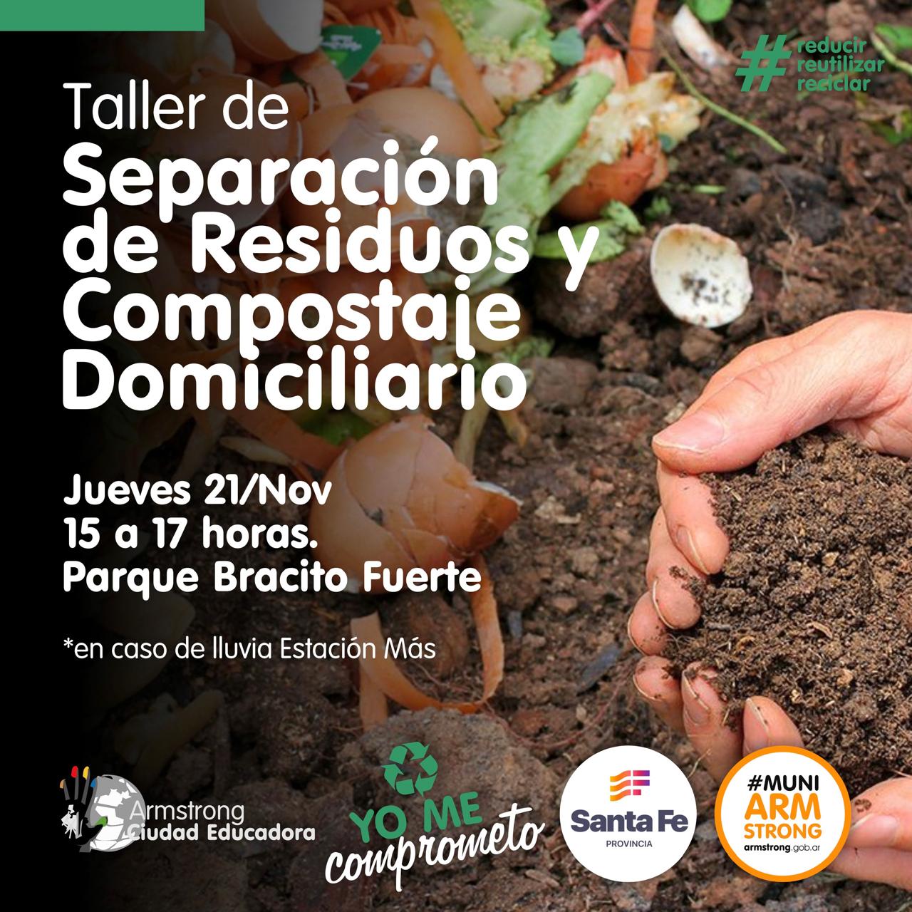 Municipalidad de Armstrong invita a participar del taller sobre separación de residuos y compostaje domiciliario que se realizará el día jueves 21 de noviembre, de 15 a 17 hs. en el parque Bracito Fuerte.