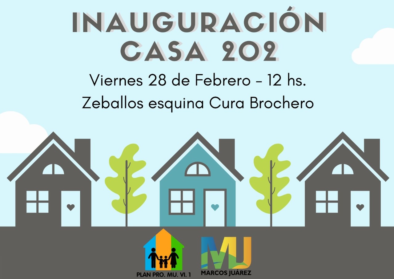 Hoy a las 12 hs será inauguración de la casa 202 de las viviendas PLAN PROMUVI. La ubicación es en Zeballos y Cura Brochero.