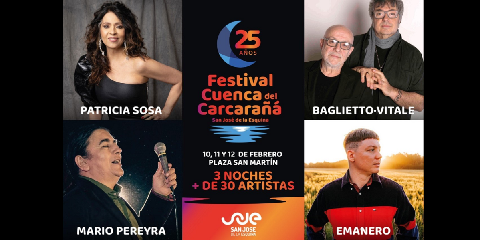 Los días 10, 11 y 12 de febrero se realizará en San José de la Esquina (Depto. Caseros) la 25ª edición del Festival de la Cuenca del Carcarañá. Con entrada libre y gratuita, se confirmó la participación de artistas de reconocida trayectoria como Baglietto & Vitale, Patricia Sosa, Mario Pereyra, Emanero y Grupo Cali que junto a músicos locales y de la región animarán las 3 lunas del festival.
