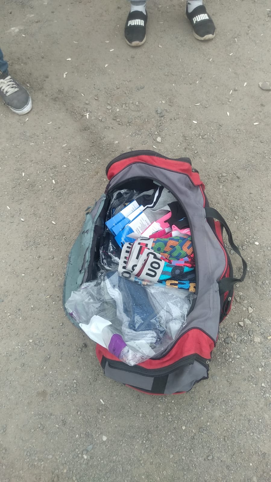 En Ruta Nacional N° 9 e Iraci con presencia policial preventiva, secuestro de prendas de vestir por venta ambulante no autorizada a vendedores que son reincidentes. Avisados previamente, se procede policialmente con las medidas de incautación de toda la mercadería.