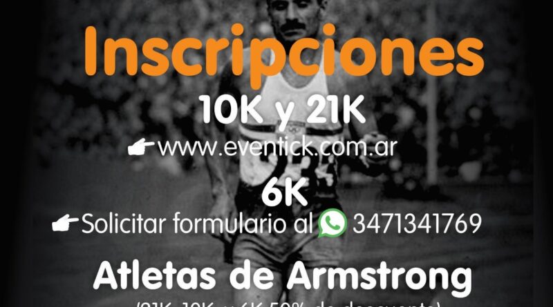 Un detalle para destacar: considerando los 20 años de esta propuesta y que los atletas locales nos representan en tantos otros circuitos, que a lo largo de todo el año están trabajando en el atletismo y son un ejemplo para los que se van sumando a la actividad, los atletas locales que van a participar 10 y 21 k. deberán completar un formulario en particular (no en Eventick), para abonar el 50 % del valor de la inscripción. Este beneficio alcanza también a los armstronenses que participen de los 6 k. https://forms.gle/26V4JokoAfK3StyGA