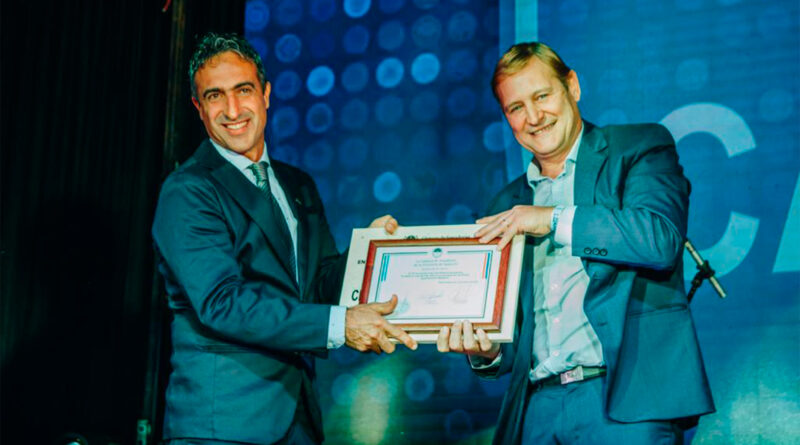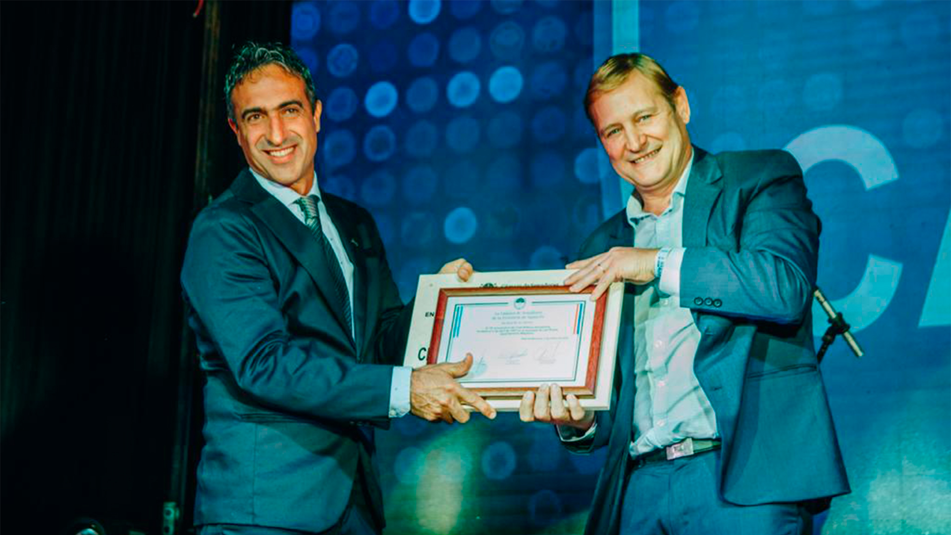 El senador provincial Guillermo Cornaglia entregó el reconocimiento junto a una placa de mármol conmemorativa en la cena aniversario que realizó la institución el sábado pasado.