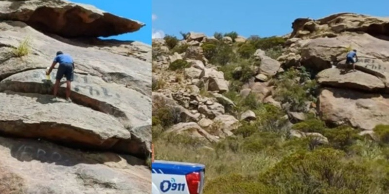 El video se viralizó por redes sociales, y las autoridades cordobesas lograron identificarlo. Tras ello, “invitado” por la policía, el hombre tuvo que volver a subir, limpiar la piedra y borrar lo que había dejado escrito.