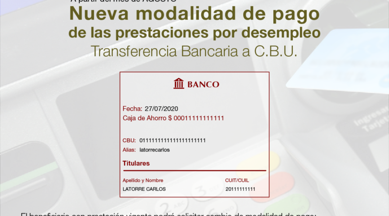 Al momento de solicitar la prestación por desempleo, el trabajador podrá elegir la modalidad de cobro, ya sea por ventanilla o CBU. De elegir CBU, deberá acreditar la constancia en ese momento. El beneficiario con prestación vigente, a partir de agosto, podrá solicitar cambio de modalidad de pago con la presentación de una nota y constancia de su CBU.