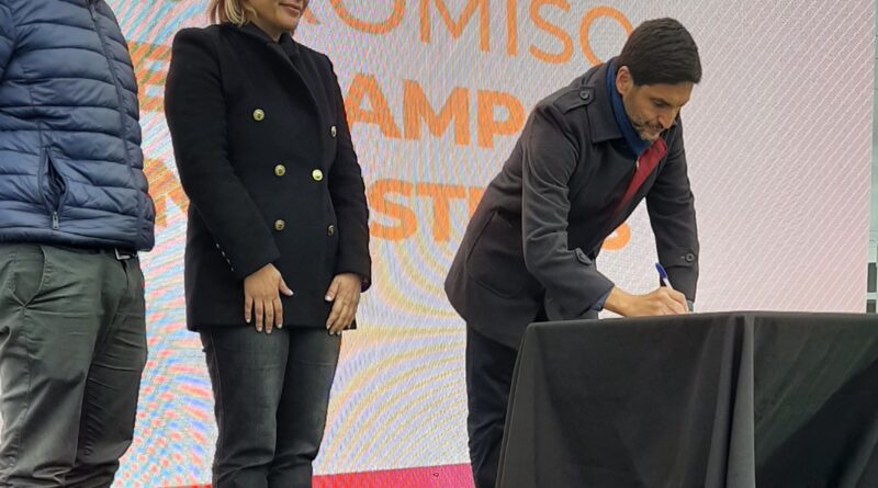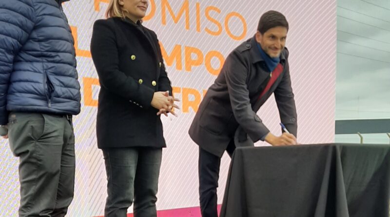 Antes de los discursos, Maximiliano Pullaro fue el primero en realizar la firma de un compromiso con el campo y la Industria, luego a la próxima Vicegobernadora de Santa fe, Gisela Scaglia y a Esteban Motta, en representación de los equipos técnicos.