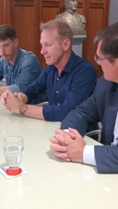 En el marco del Programa ACTIVA EMPRENDEDOR, el ministro Gustavo Puccini se reunió en el salón San Martín de la municipalidad de Armstrong con el Senador Pablo Verdecchia, los intendentes Guillermo Luzzi (Int. de Armstrong), Javier Meyer (Int. de Las Rosas) y Emanuel Sagripanti (Pte. Comunal de Montes de Oca).