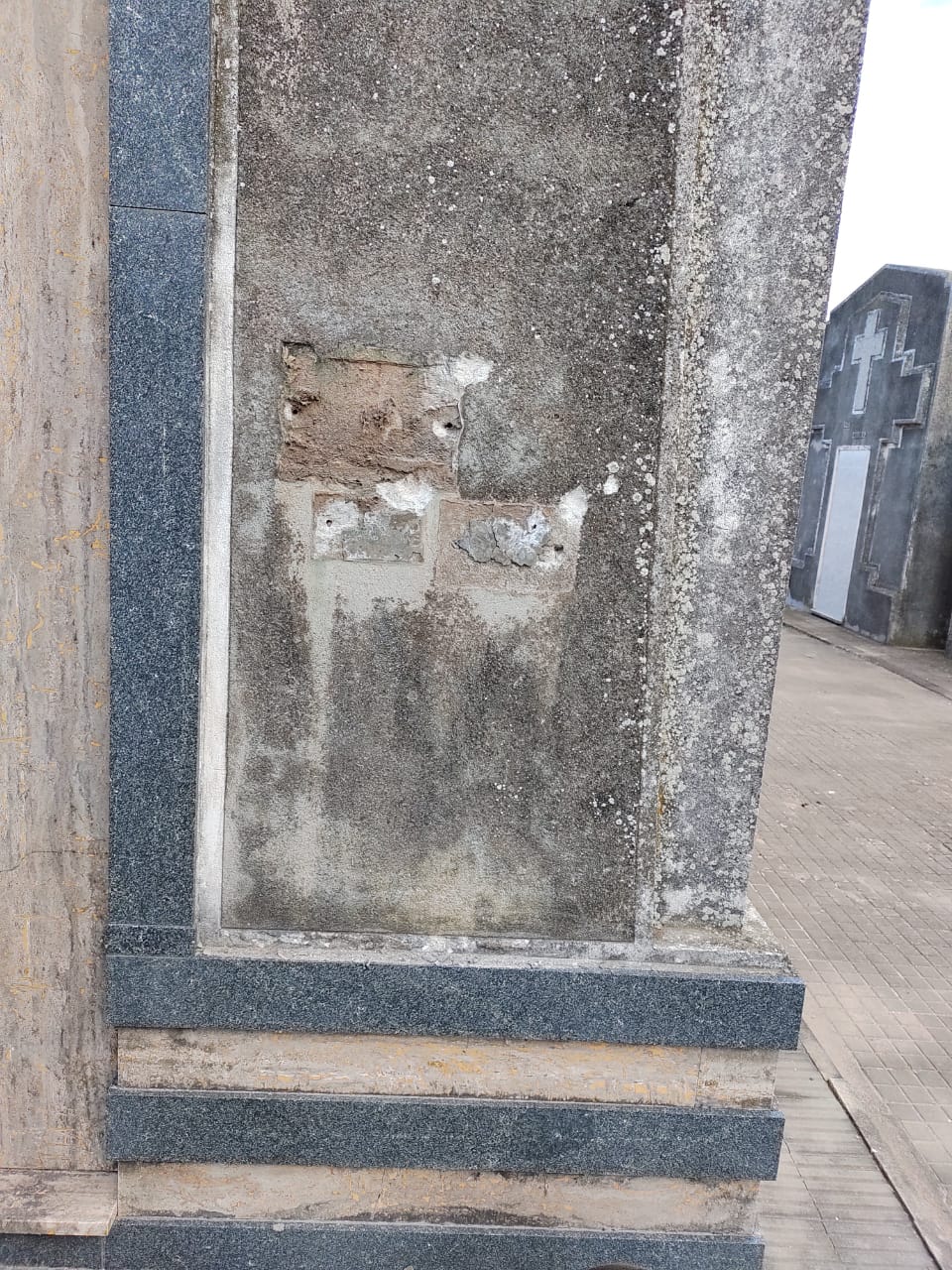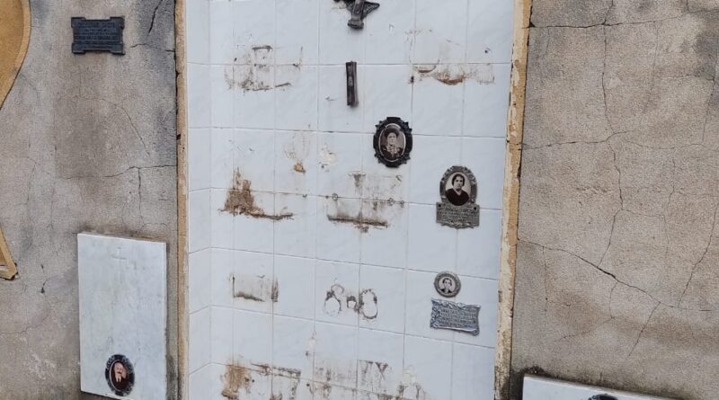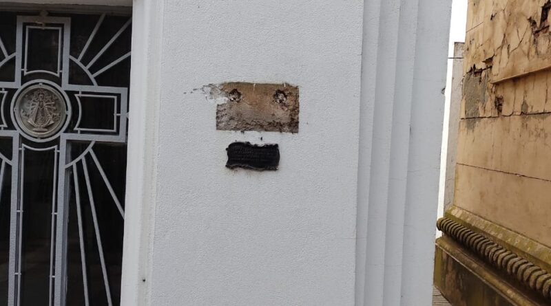 La mayoría de las placas de nichos y tumbas fueron saqueadas por malvivientes que hasta el momento no se tiene conocimiento.Lo podemos titular como un miserable acto de vandalismo en la necrópolis local, según Carlos Nicastro es mucha la cantidad de placas de bronce que han arrancado, pero además y se supone que por el apuro también se han llevado lo que no era de bronce.