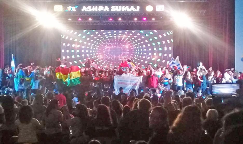 Los colores de las banderas de los 10 países y de las 23 provincias que fueron parte del evento folclórico se multiplicaron en una sala Homero Manzi del Centro Cultural, que fue desbordada por las 2.700 personas que movilizó el festival que fue organizado por la compañía de danzas folclóricas Ashpa Súmaj, que dirigen los profesores Daniel Varela y Claudia Varela.