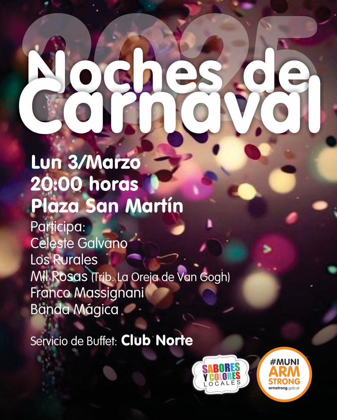 Municipalidad de Armstrong invita a ser parte de los festejos de carnaval que se llevarán a cabo durante el primer fin de semana largo del año, en distintos espacios y escenarios, con mucha alegría, color y música, canto y danza en vivo con artistas de la ciudad y la región.